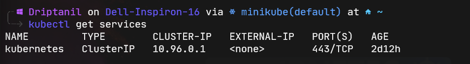 service/kubernetes ClusterIP 10.96.0.1 <none> 443/TCP 5d12h